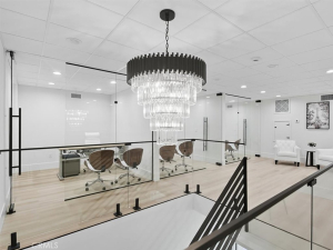 Step into a refined workspace that blends form, function, and aesthetic appeal. From the moment visitors arrive, the reception area’s upscale ambiance conveys professionalism. Glass-walled conference rooms allow for privacy without sacrificing transparency, while private offices offer quiet focus. Practical amenities—including two kitchenettes and ample parking—are matched by design-forward finishes, such as statement lighting and bespoke cabinetry. This space reflects a commitment to quality and is ideal for businesses looking to brand themselves through their office environment.